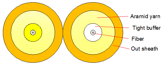 Kabel Simplex wykorzystuje włókno buforowe o średnicy Φ600 μm lub Φ900 μm jako optyczny środek komunikacji. Ścisłe włókno buforowe owinięte warstwą przędzy aramidowej jako elementy wzmacniające, które jest najbardziej wytłaczane w celu wytworzenia warstwy (PVC) lub niskodymnego materiału bezhalogenowego (LSZH, niskodymny, bezhalogenowy, opóźniający palenie).
